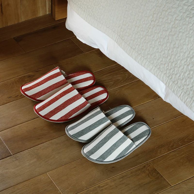 Linen Cotton Silk Nep Stripe Slippers / loomer