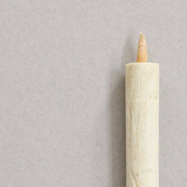 櫨蝋100%で作られた和ろうそくは、日本古来より受け継がれる手掛け製法を用い、職人が一本一本手作りで製造しています。そのため先端部分をよく見ると、年輪のような蝋の層が幾重にも重なっています。ひとつとして同じものはなく、手掛けならではのぬくもりが感じられます。