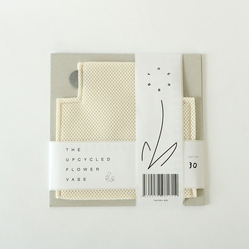 衣類のために生産され、過剰在庫やミスなどの理由で破棄処分されてしまう生地を利用した、アップサイクルフラワーベースです。日本のアトリエでひとつひとつ丁寧に手作りされています。
