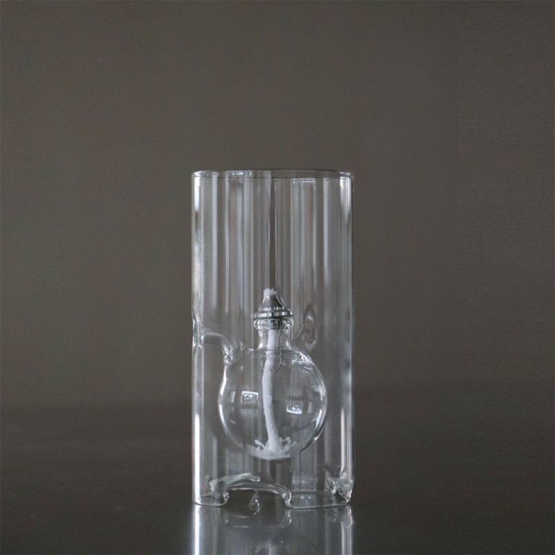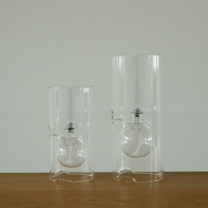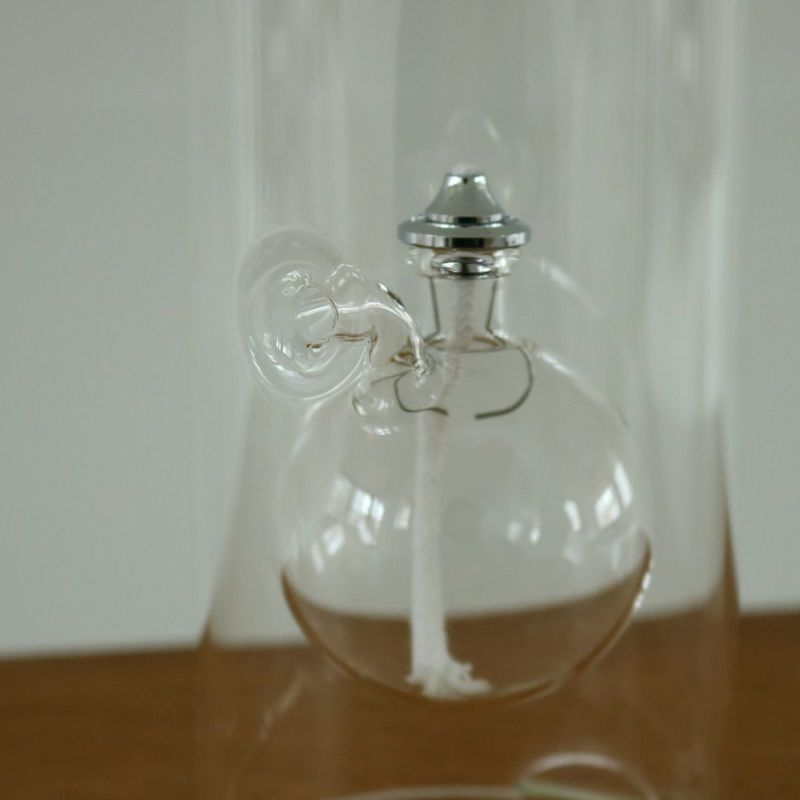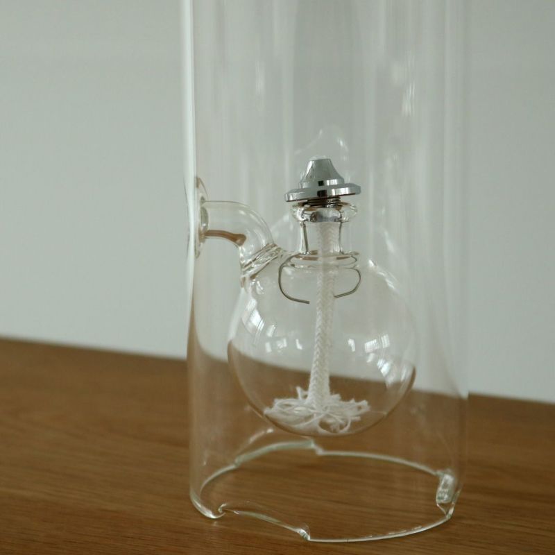 チェコのガラス職人が一点一点ハンドメイドで製作するオイルランプ。筒状のシリンダーの中で浮かび上がったかのような、ほのかに揺らぐ火が優しい明かりを灯してくれます。ガラスは、浮遊する炎を閉じ込め風防と防災の役割もあり、室内外でお使いいただける機能性を持ったランプ。側面の穴からオイルを入れることができます。ギフトにもおすすめです。