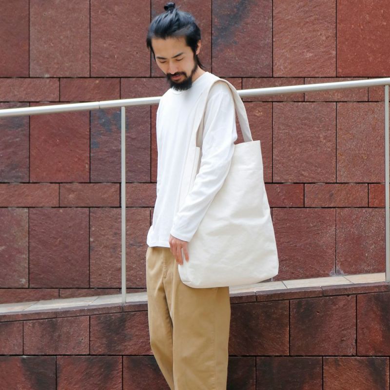 キャンバス素材のトートバッグはよくあるけれど、そのどれとも異なる魅力を持つのがKaanのバッグです。縦に長いフォルムでビッグサイズ。肩から下げてみると、絶妙なバランスでコーディネート完成させてくれます。持っていると「それどこのバッグ?」と聞かれる人も多いのだとか。