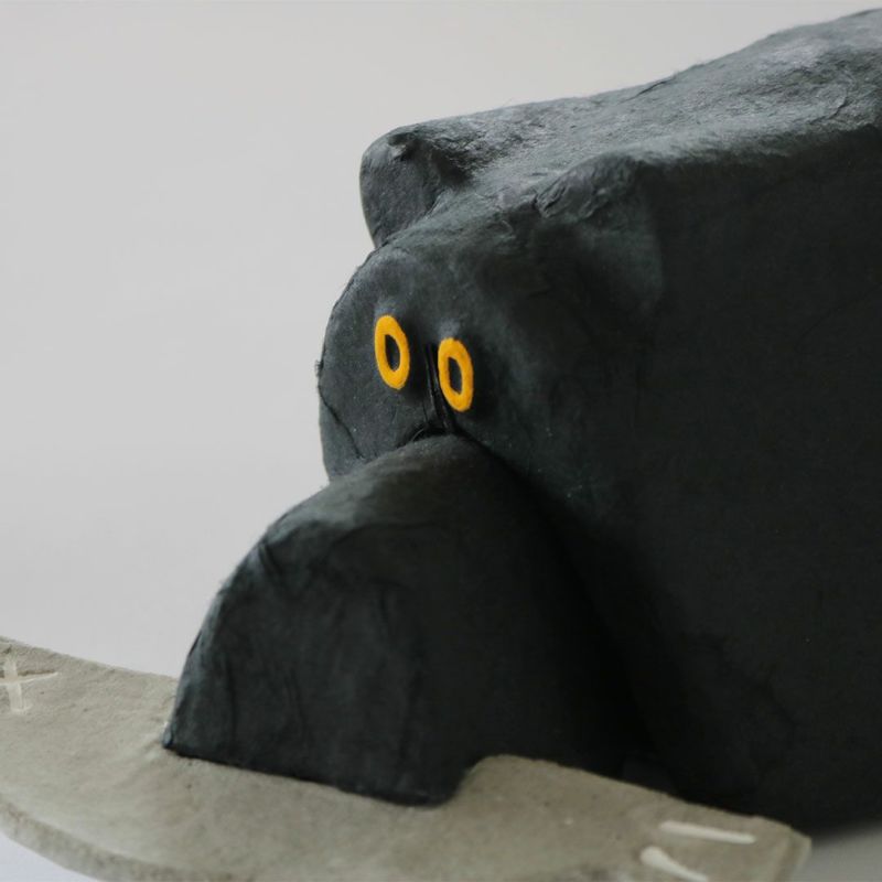 張り子の独特な紙の質感を感じるしっかりしたフォルムの真っ黒なお顔に、まあるいつぶらな瞳。
