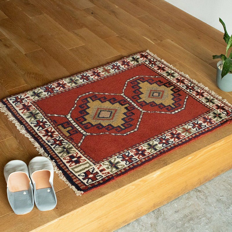 トライバル(tribal)とは、「部族の」という意味です。イランやトルコなどの国に暮らす少数民族によって手織りされる、伝統的な文様が美しい絨毯を総称してトライバルラグ=部族民の絨毯と言います。かつて家畜とともに移動して暮らすノマド(遊牧民)が自分たちの生活の道具として織っていたもの。定期的に移動を繰り返す彼らはテントの床としてはもちろん、のれんのように入口にかけてドア替わりにしたり、塩を入れる袋やランチョンマットなど、あらゆるものを自分たちの手で織っていました。
