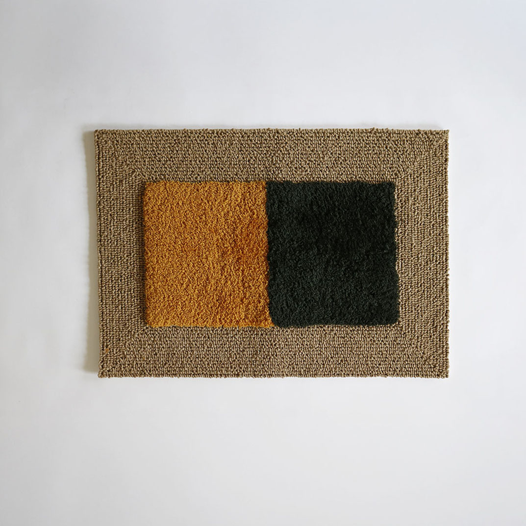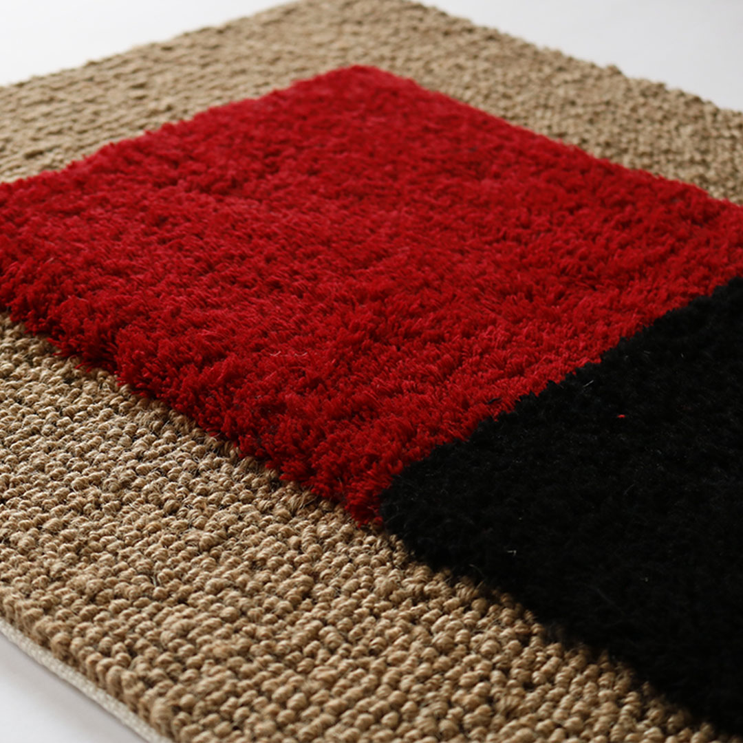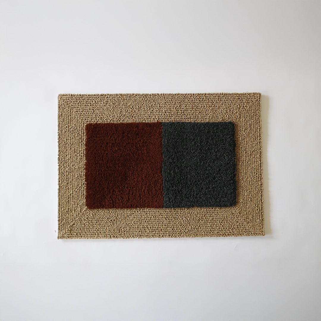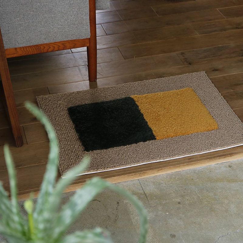 異なる素材の質感が自然なコントラストを生み、空間にさりげないアクセントを添えてくれます。見た目の美しさだけでなく、踏み心地の変化も心地よい一枚です。