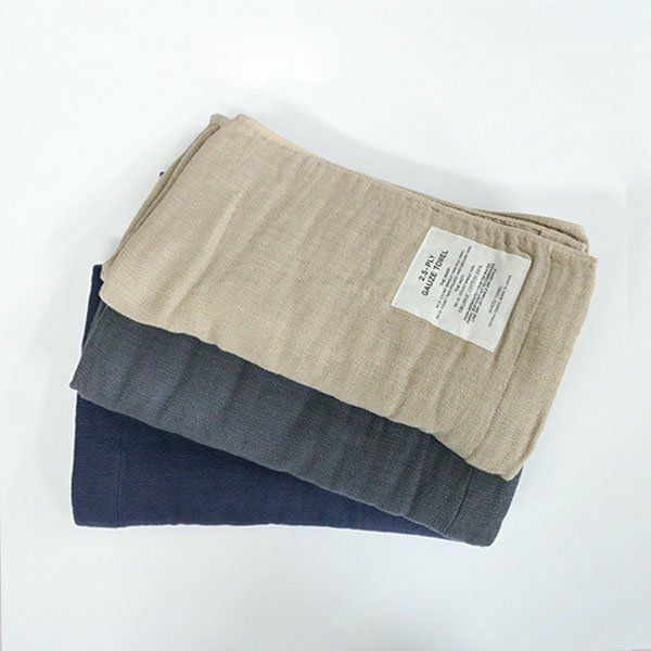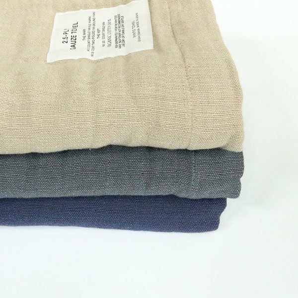 2重でも3重でもない。3重ガーゼの真ん中を半分にする特殊な重ね織りにより、ガーゼの柔らかさと独特の肌触りを実現したタオルです。高い吸水性を保ちながら、かさばらず、ごわつかず、速乾性にも優れています。バスタオルサイズはクーラーで冷えた体に羽織ったり、寝るときのタオルケットとして使ったり、あらゆる用途で活躍します。