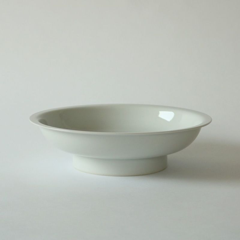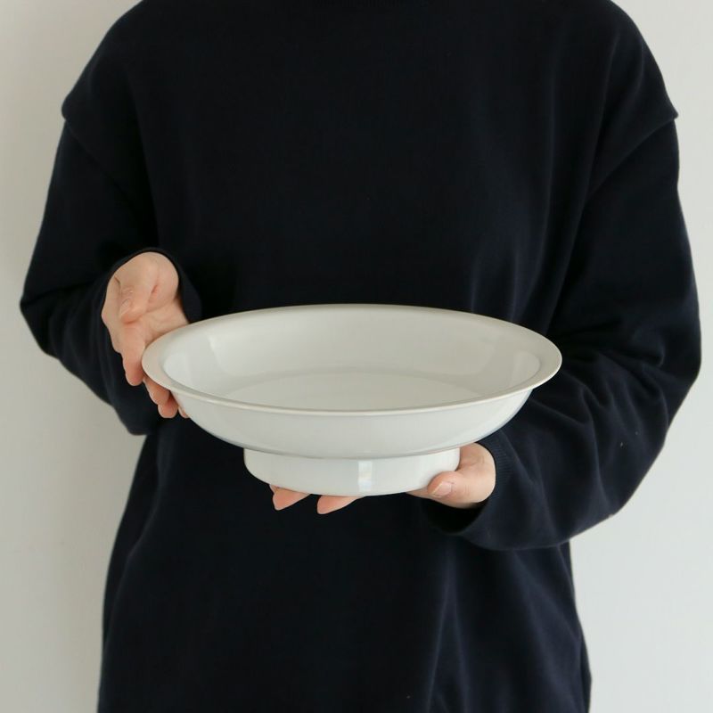 こちらは緩やかなリムが特徴的なソフトディープシリーズです。高台がついた高級感のある仕様で、食卓に特別感が生まれます。Φ140とΦ260の2サイズ展開です。めらかな曲線が気持ちよく、料理を美しく引き立てます。