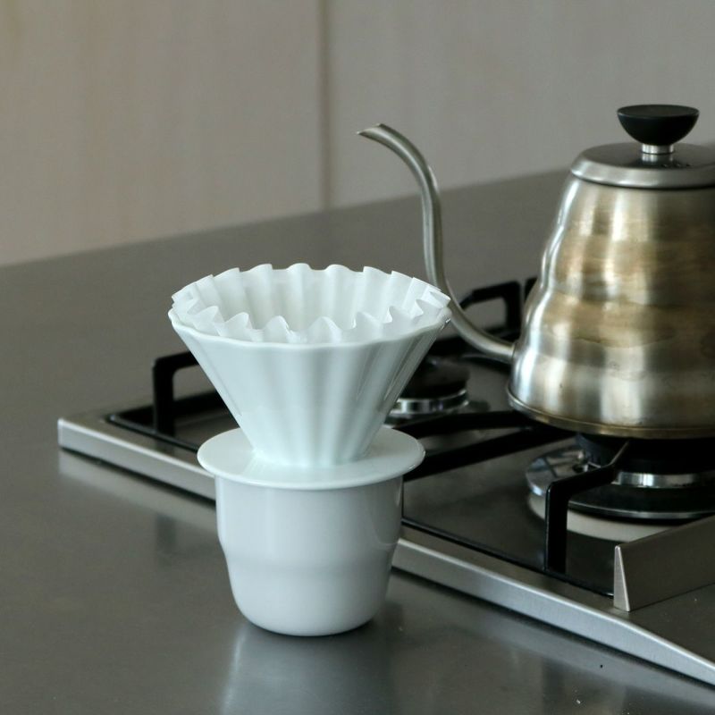 こちらは円錐状のコーヒードリッパーです。透き通るような白磁が美しく、コーヒーを抽出しながら満たされた気持ちにさせてくれます。カップにそのまま乗せて使うことができるので、同じセシリエ・マンツのシリーズで揃えるのもおすすめです。コーヒー好きの方へのギフトにいかがでしょうか。