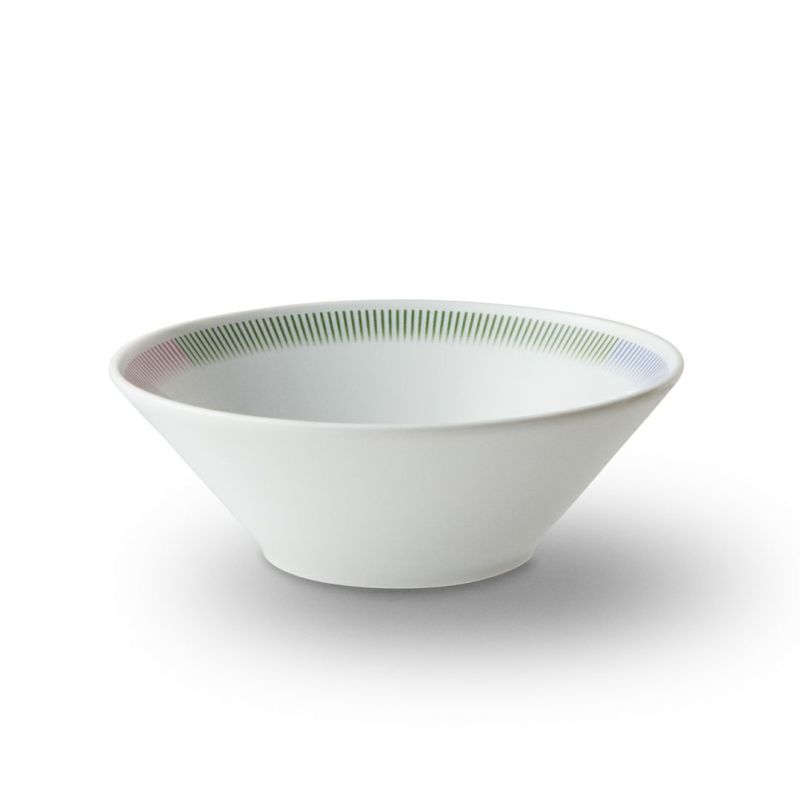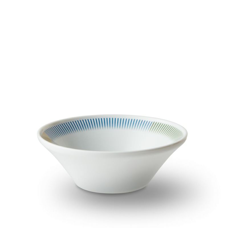 強度のある高密度の陶土を用いた美しく艶のある白磁の器に、エッジのカラーが彩りを加えます。