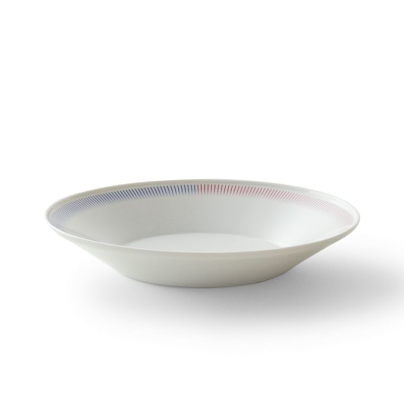 ピエール・シャルパンは有田焼の伝統的な装飾をもとに新たなシリーズを生み出しました。懐かしさと新しさを併せ持ち、フォルムと装飾の関連性を注意深く考えデザインされています。今回彼は器の形状と装飾を同時にデザインすることに重点を置き、それぞれの器の縁に沿ってわずかな隆起をつくり、それが陰影を生むというシンプルなディテールを加えました。中央部には色を付けていないので、その真っ白なスペースは盛り付けた料理が映えることでしょう。