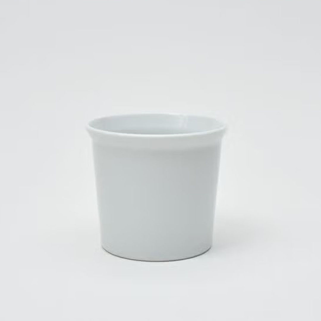 取っ手が無いマグカップ。コーヒーゼリーやチョコレートムースなどのデザートにもお使いいただけます。