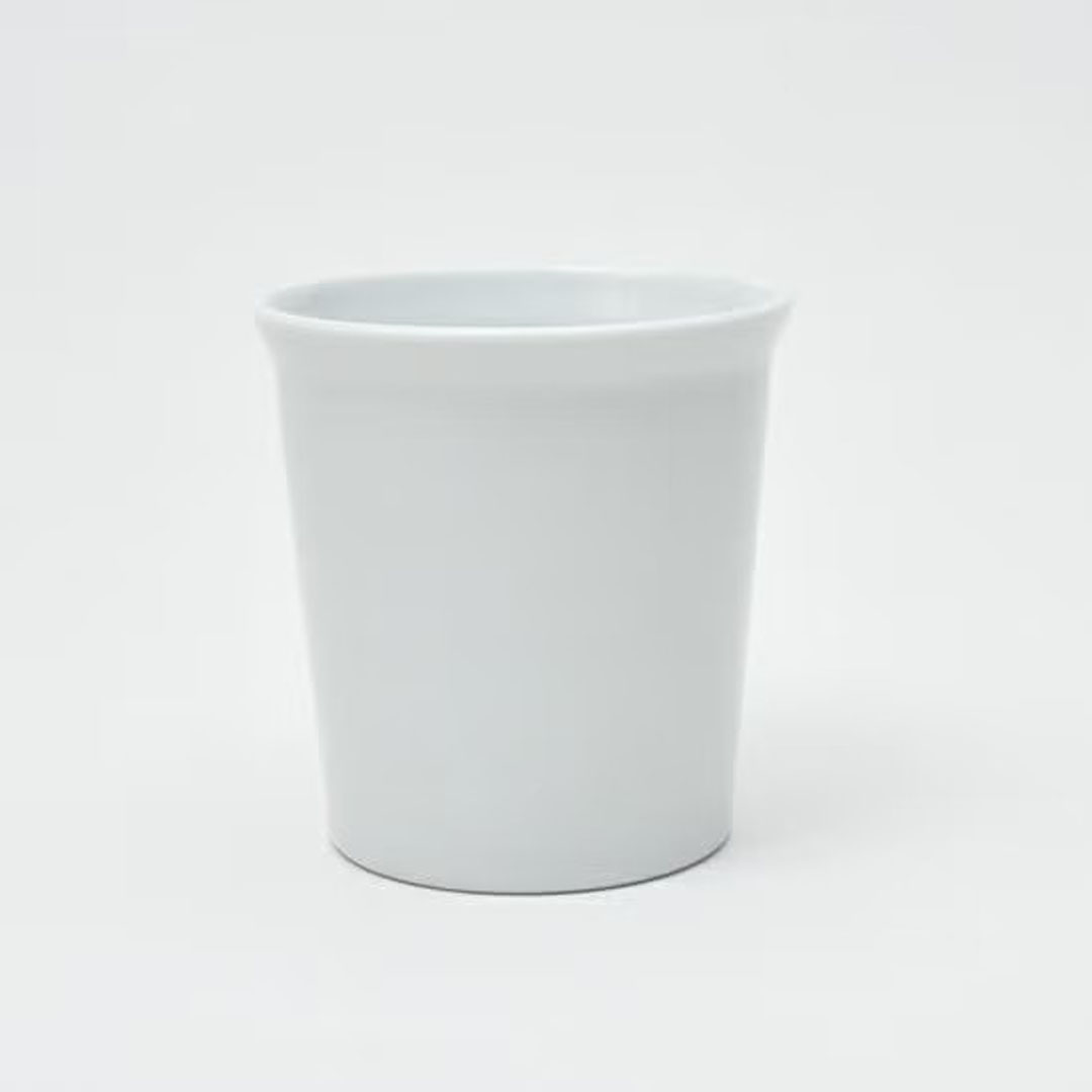 強度のある高密度の陶土を用い、釉薬をかけた艶のあるホワイトのマグカップ(270ml)。滑らかな持ち心地が魅力です。