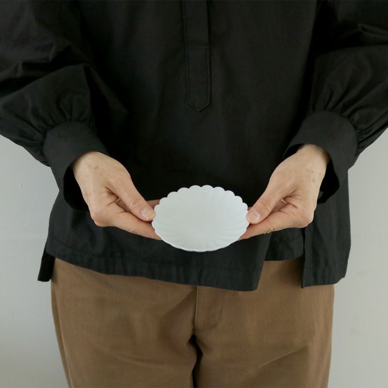 一見、洋食器のように見えますが、”輪花皿”とよばれる和食器のような雰囲気もあり、和洋限らず幅広いシーンでご使用いただけます。