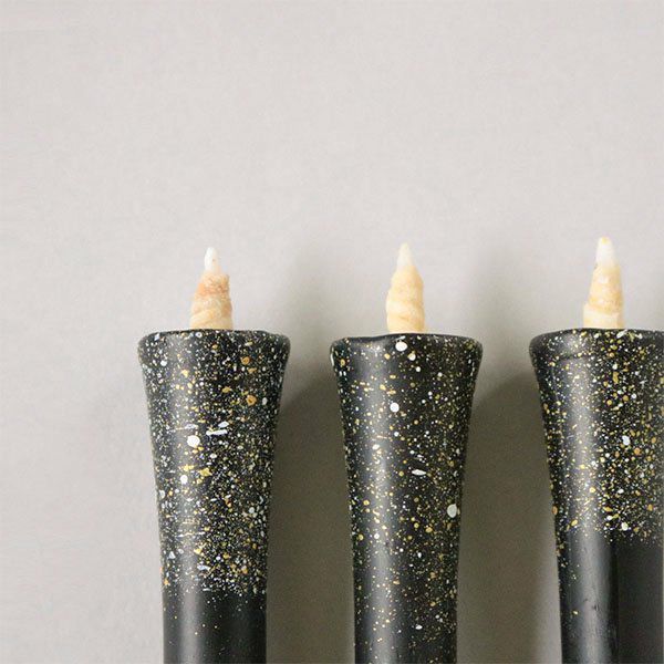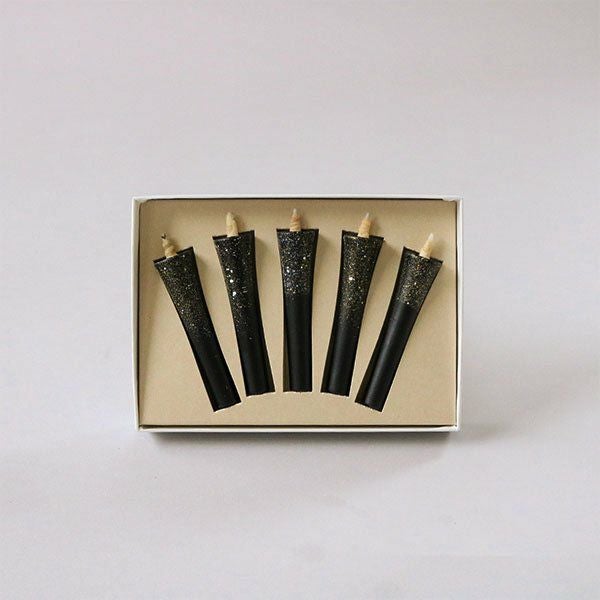 ろうそくの中に宇宙を閉じこめることをコンセプトにつくられた「宙」。漆黒のろうそくに金銀を星のように散らしています。静かな夜空にきらきらと輝く星々が美しいこちらは贈り物にもおすすめです。