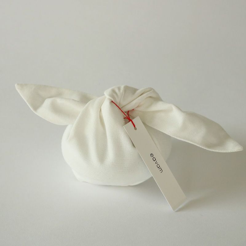 そして袋は、日本の茶道具を入れる袋「仕覆」をモチーフにデザインされています。eavamのスタッフの方がひとつずつ丁寧に縫製しています。