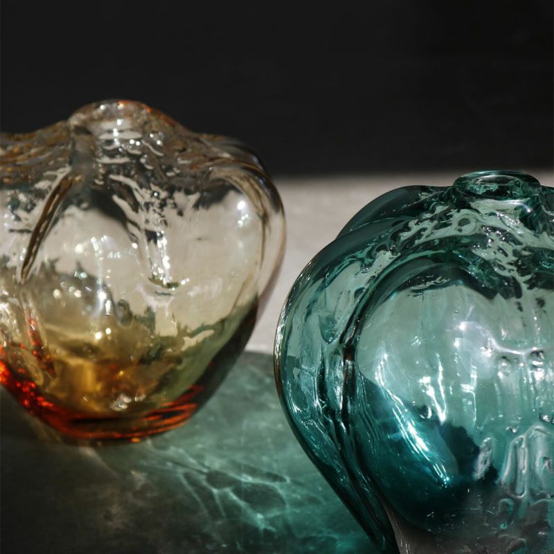 特に機能や用途を設定して創造されたものではありませんが、吹きガラス制作時にできた穴がありますので、花を挿して飾ることも可能です。(その際水を入れることもできますが、内部の掃除が困難ですのでお気をつけください。)