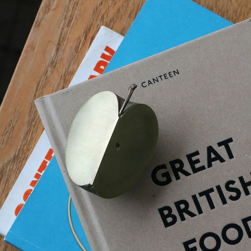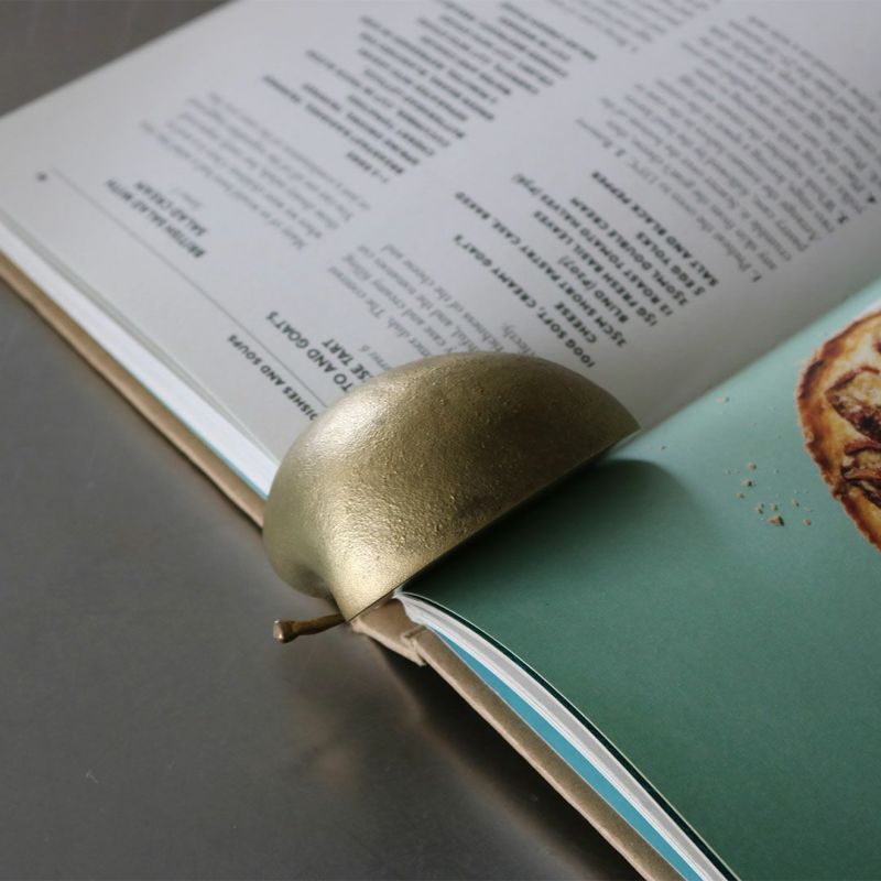 レシピ本を開いて置いておきたいとき、りんごのカット面が本にぴったりフィット。しっかりとした重さは、分厚い洋書を読む際にも役立ってくれます。