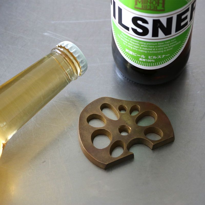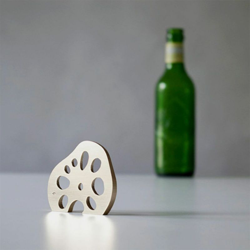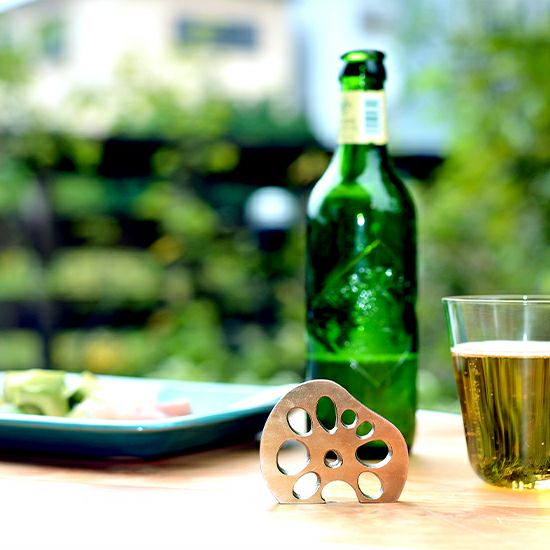 レンコンのいびつな形がしっかりと手にフィットし、気持ちよく栓抜きが行なえます。コースター代わりにも。