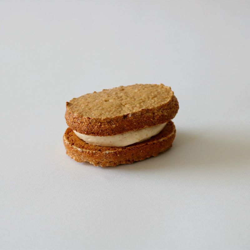 皮付きアーモンドパウダーと米粉で作るグルテンフリーの生地は、外はさっくり中はしっとりとした口当たりの柔らかい食感です。バタークリームは北海道産バターをたっぷり使い、濃厚ながらもあっさりした味わいに仕上げています。