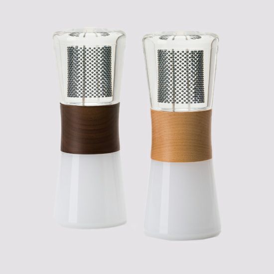 粒状の太陽電池に光があたると、砂時計の砂が落ちるように少しずつ電気を蓄えます。樹種カラーは、birchとwalnutの2色から、お選びいただけます。