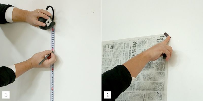 2.予め用意しておいた横722mm×縦496mmの紙を、先程印を付けた位置に沿うように貼り付けます。新聞紙などが使えます。