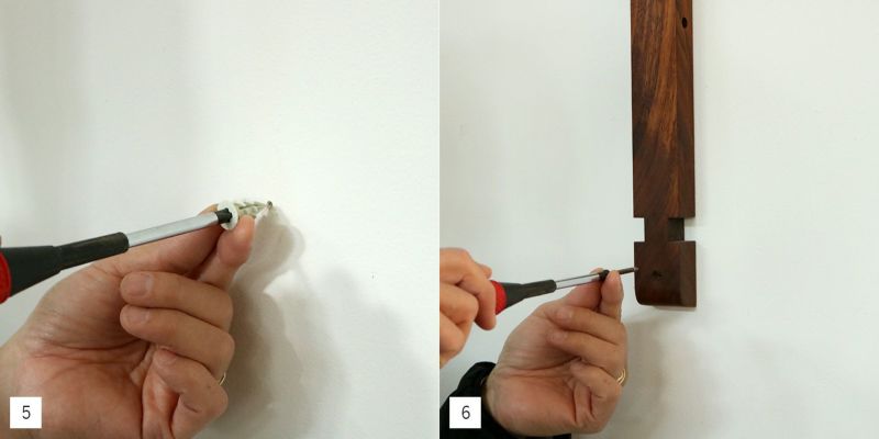 4.穴を開けた箇所に付属の棚受け支柱取り付け用ネジをねじ込み、そして取り外します。