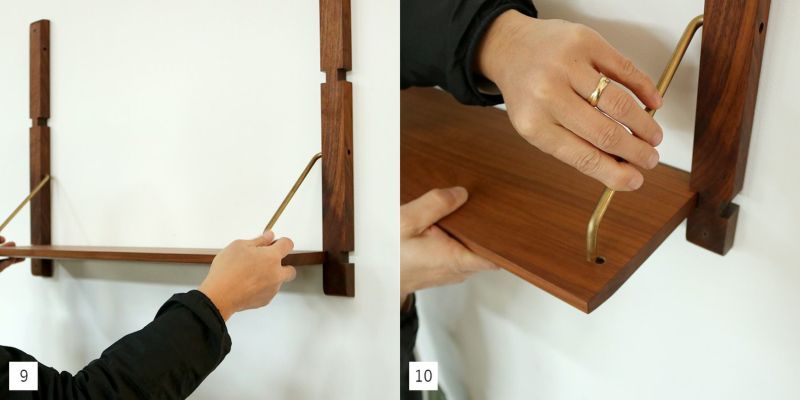 9.棚を棚受け支柱のくぼみに取り付けます。