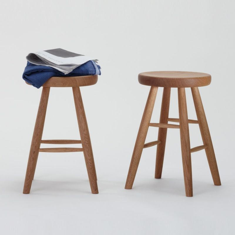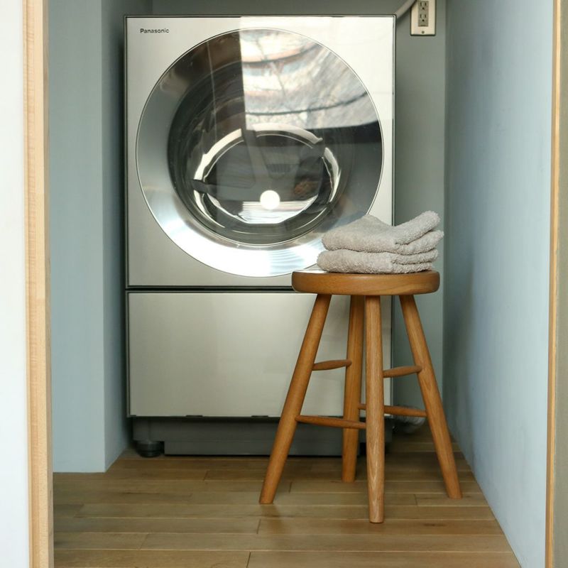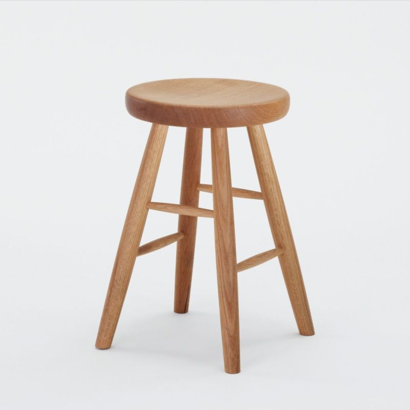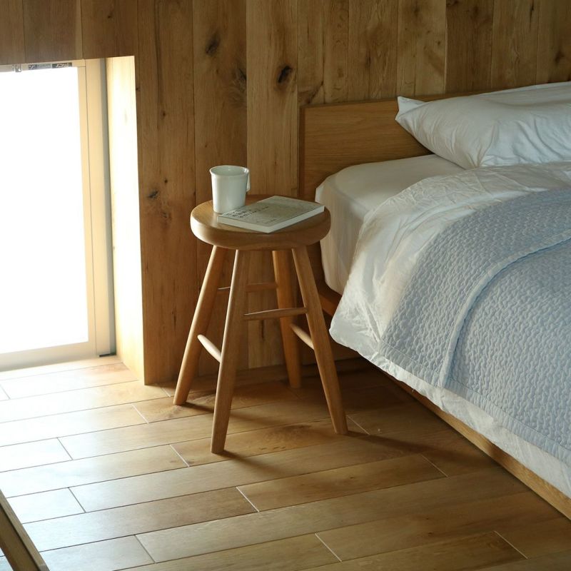座面に厚みのあるしっかりとしたスツールです。ホワイトオークの無垢材を使用し、しっかりと丸みを帯びた柔らかな触り心地。料理の合間に少し腰掛けたり、急な来客で席を追加したいときなど家に一台あると小回りの利く便利なアイテム。