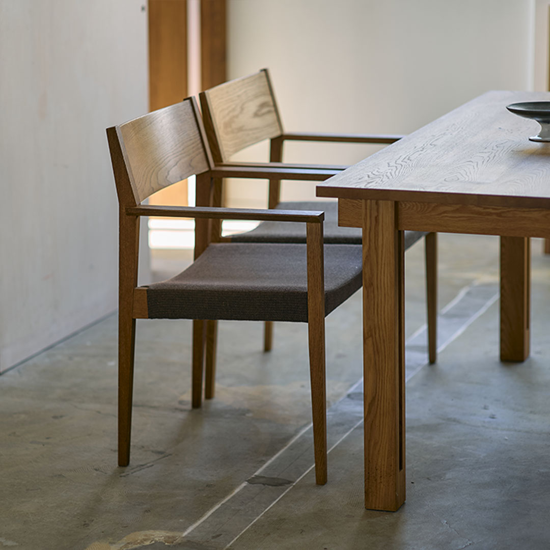 ホワイトオーク材を用いたラインが細く、しなやかで落ち着いた雰囲気のアームチェアです。