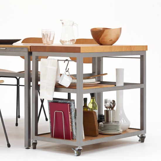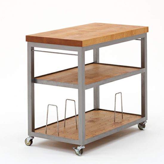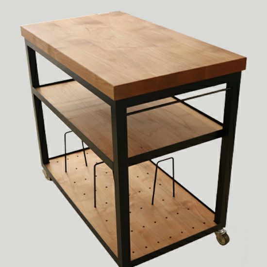 木の節や木目の美しいアルダー材を使用したワゴンテーブル。