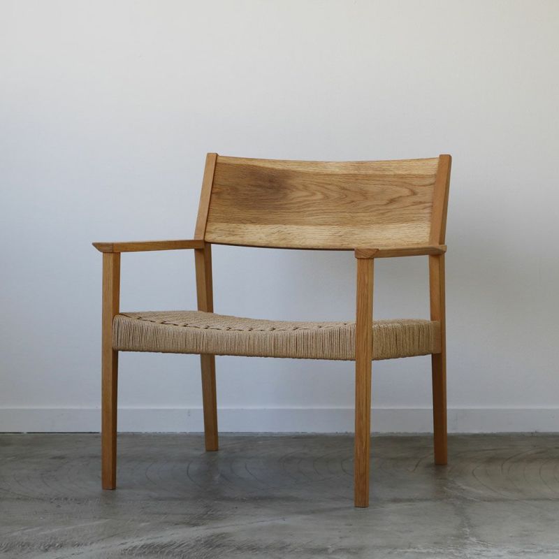 少しゆったりとしたサイズながらも圧迫感がなく、座面高が低いイージーチェアです。ホワイトオーク材を用いたフレームは線を細くすることで、しなやかな印象に。
