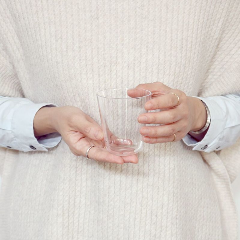 【おいしそうに見える・触れてみたくなる・いいさわり心地・味わうことを邪魔しない】という考えをベースに【飲み物が入って完成するグラス】をイメージしたgrafオリジナルのグラスです。容量は255mlと食事中にも使いやすいサイズ感です。