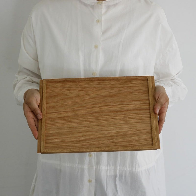 こちらはそんな家具を作った過程で生まれた未利用材で作った、食事の配膳やランチョンマットのような使い方もできるトレーです。スッキリと薄い仕様も特徴で、キッチンやリビングでの日々の整理整頓にも活躍します。