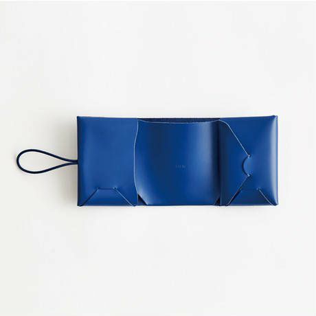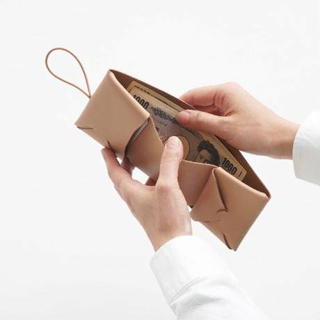 一枚の革を縫製せずに折り込んで組み立てた3つ折り財布。