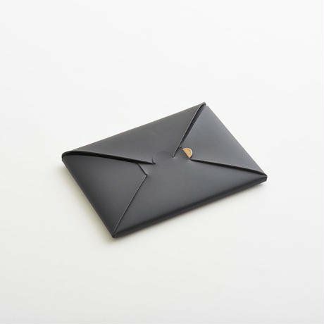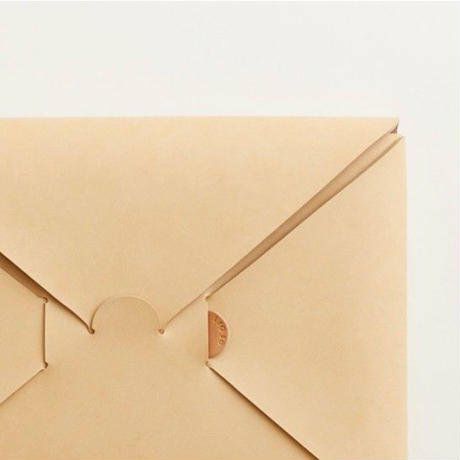 一枚のパーツを縫製せずに折り込んで組み立てたシンプルな構造のクラッチバッグ。