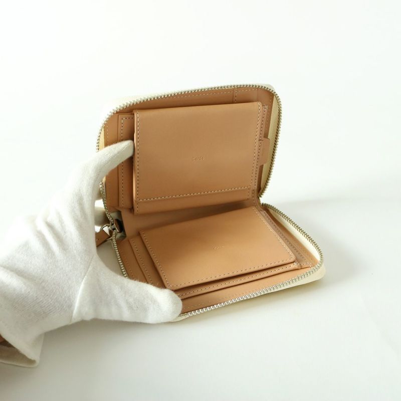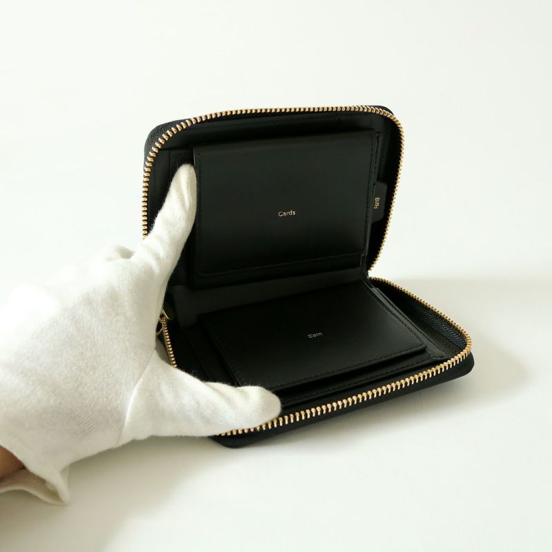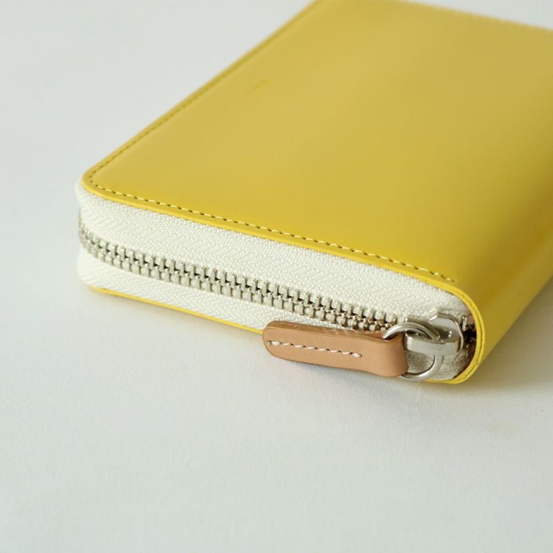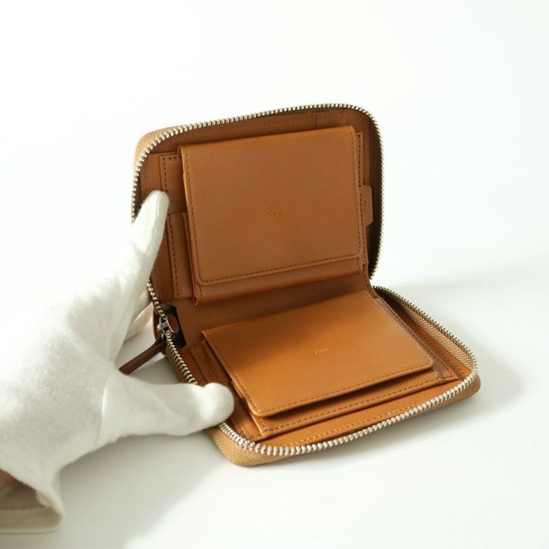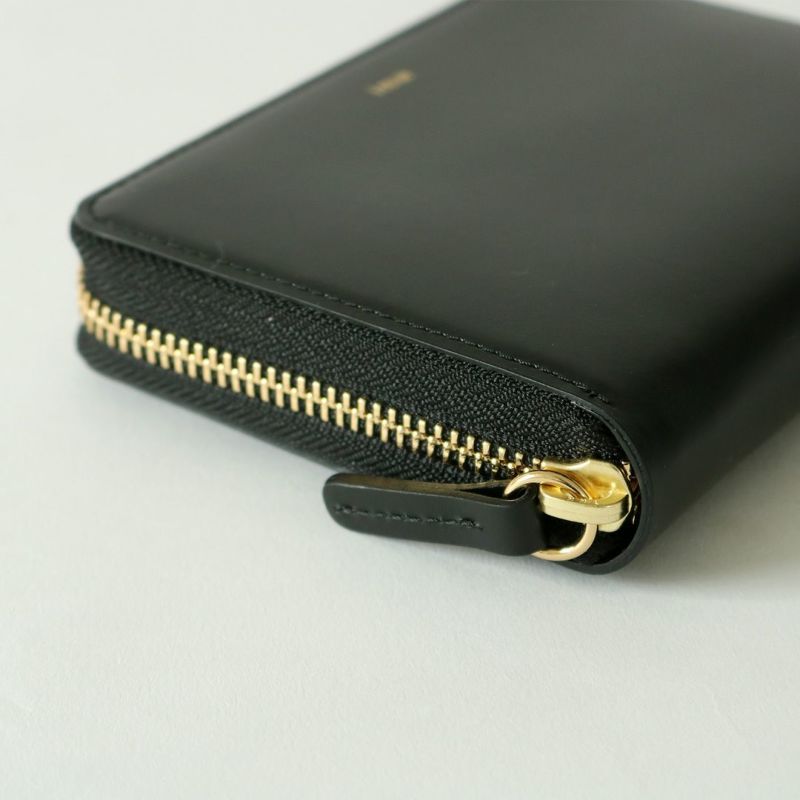 通常このサイズのお財布は、紙幣を3つ折りにして収納するのが一般的ですが、両端の内装ポケットを左右貫通させることで、2つ折りの紙幣でも底に滑り込ませて収納ができるようにしました。