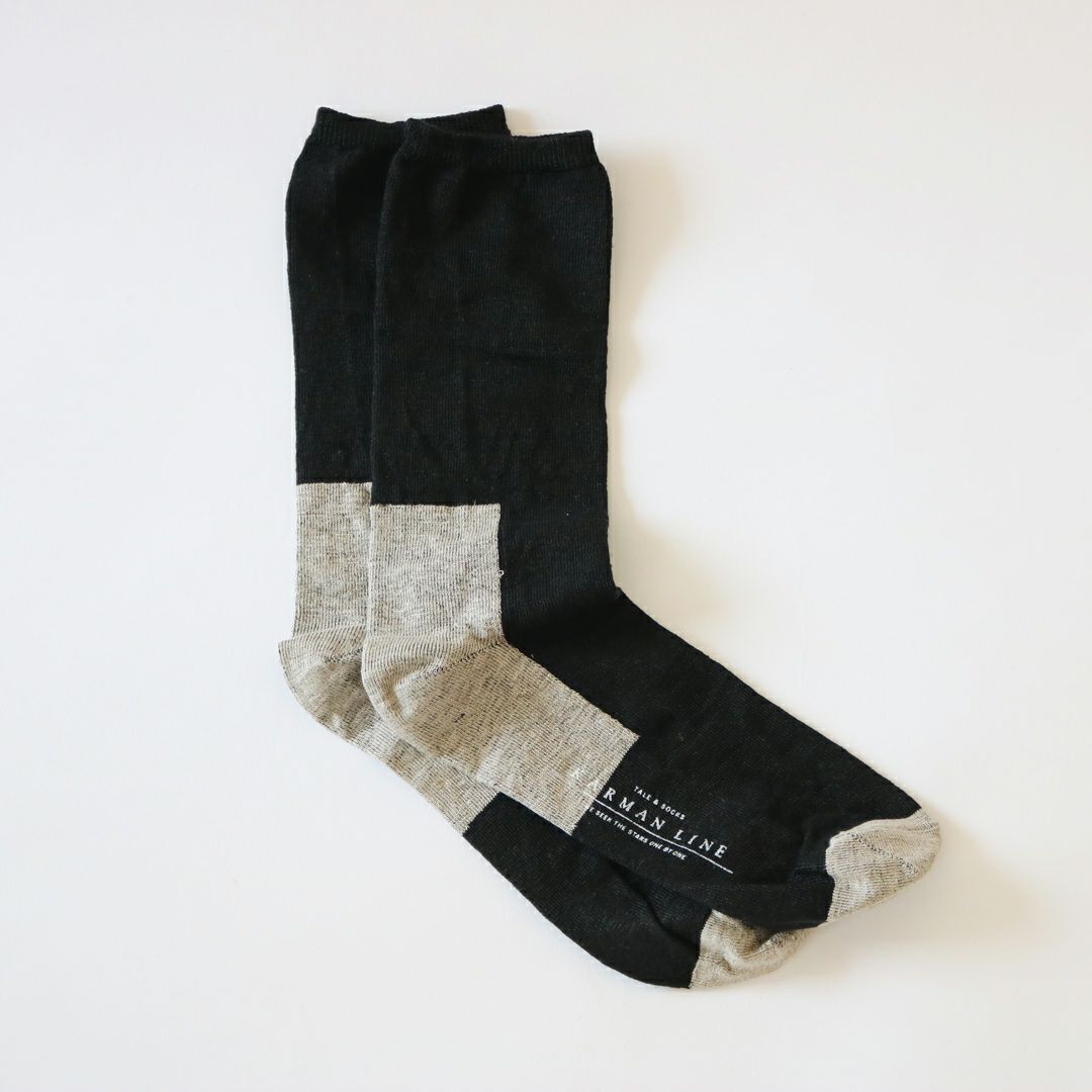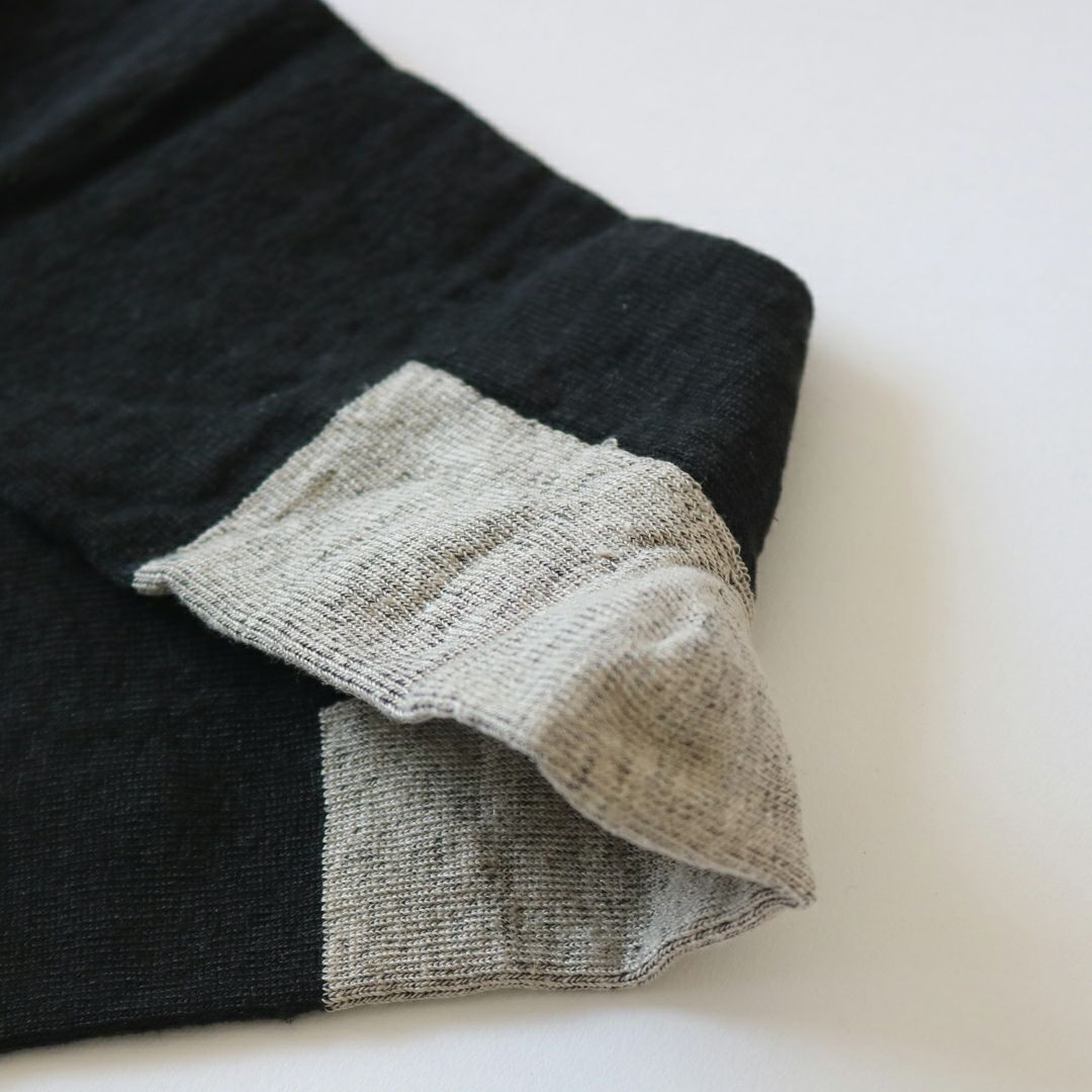 メンズサイズにもリネン素材の靴下が今季から登場しました。リネンは一年を通して心地いい素材ですが、一本一本の繊維にある穴、中空孔の働きによって綿よりも優れた 吸水性・発散性・通気性を備えているため、日本の夏には特におすすめ。