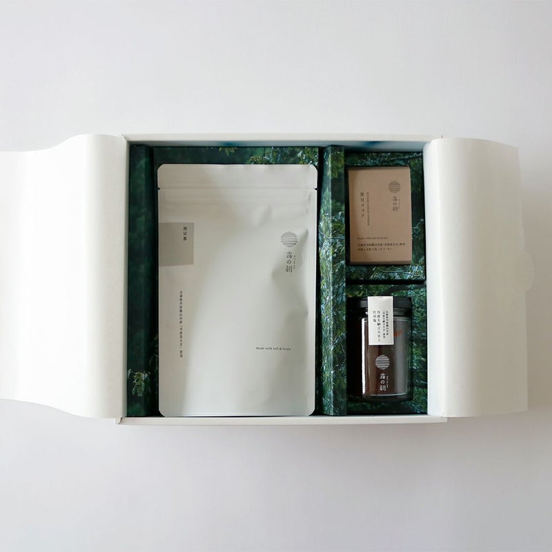 こちらは、黒豆茶と無添加の小豆ジャム、グルテンフリーの黒豆ココアクッキーの詰め合わせです。