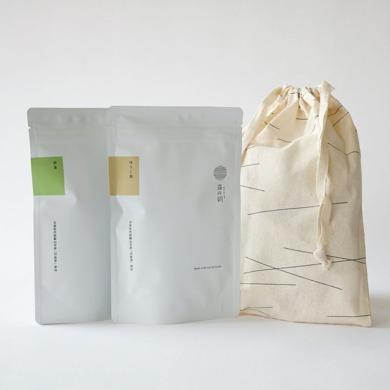 こちらは、お茶2種類の巾着セットです。「丹波茶 煎茶」「丹波茶 ほうじ茶」「黒豆茶」から2種類お選びいただけます。