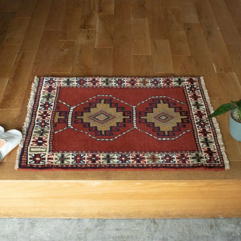トライバル(tribal)とは、「部族の」という意味です。イランやトルコなどの国に暮らす少数民族によって手織りされる、伝統的な文様が美しい絨毯を総称してトライバルラグ=部族民の絨毯と言います。かつて家畜とともに移動して暮らすノマド(遊牧民)が自分たちの生活の道具として織っていたもの。定期的に移動を繰り返す彼らはテントの床としてはもちろん、のれんのように入口にかけてドア替わりにしたり、塩を入れる袋やランチョンマットなど、あらゆるものを自分たちの手で織っていました。