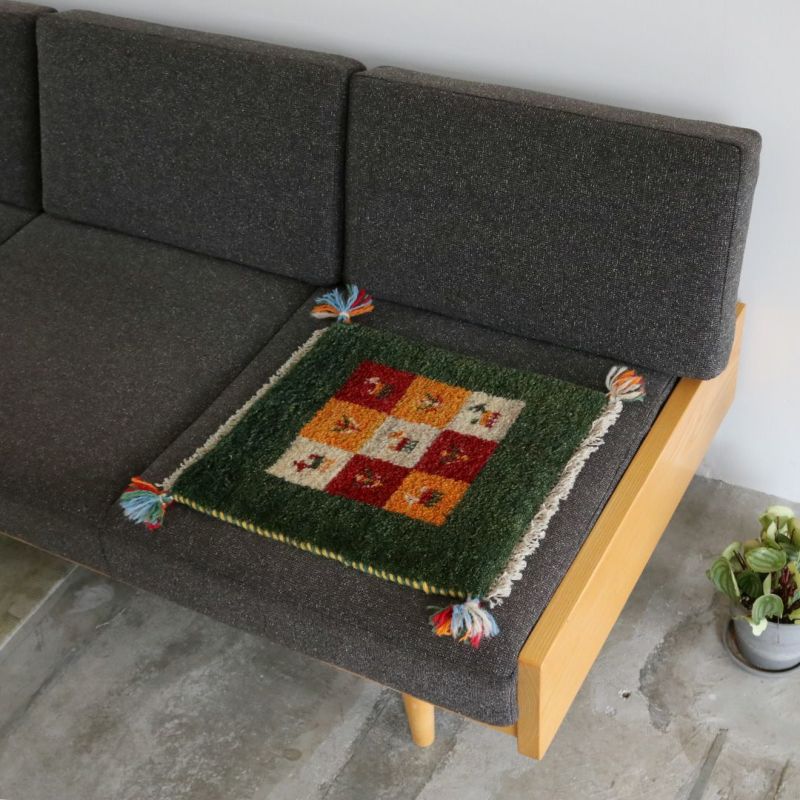 こちらは通称チェアマットととも呼ばれる椅子の座面にぴったりの座布団サイズ。フローリングに、いつもの絨毯の上に敷いて、ちょっとくつろぎのスペースをつくりませんか。