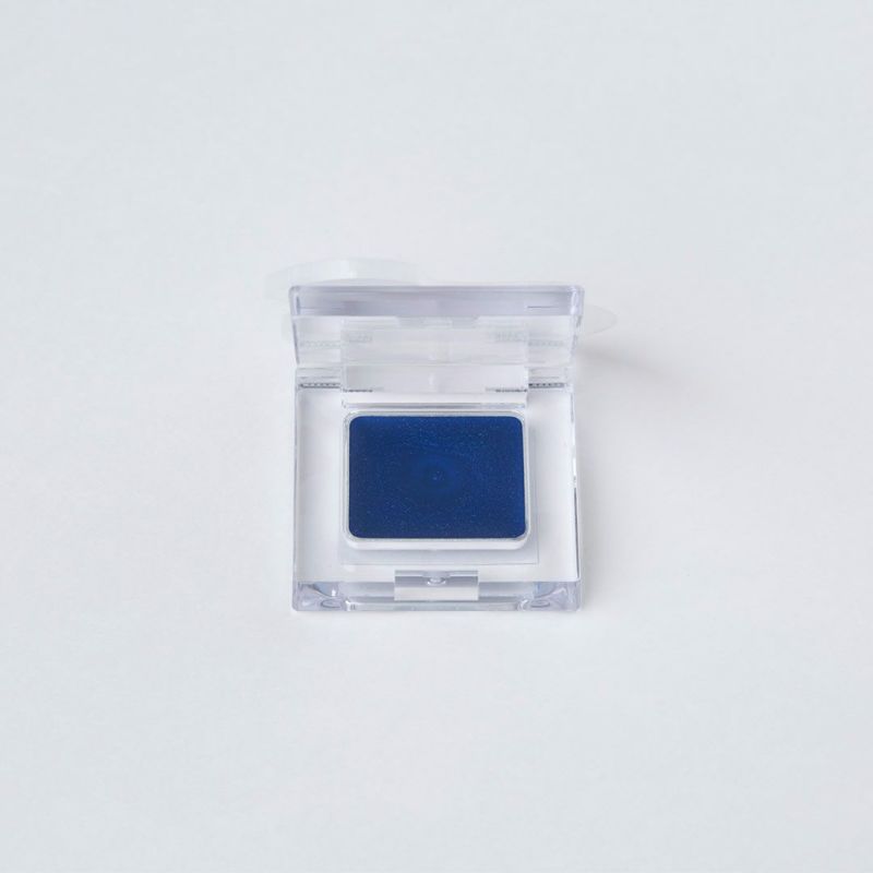 まるで月夜を眺めた時のすこし明るい夜空をイメージした、ミッドナイトブルー。まぶたに乗せた時はマットな質感、濃いブルーに細かなシルバーラメを入れ込みました。筆で取って、アイライン使いもおすすめです。