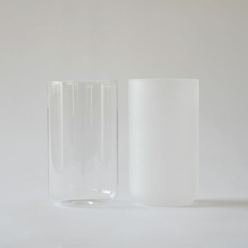 クリアタイプは、食卓に馴染む日常使いしやすいグラス。冷たい麦茶やお水はもちろん、どちらのタイプも耐熱ガラスの特性を活かして、温かいお茶などを入れて湯呑みのようにもお使いいただけます。