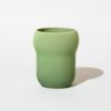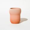 こちらは柔らかいふくらみのある形が特徴的なペンスタンド。手染めによるグラデーションが平編み重ねのテクスチャを引き立てています。縫い目のようなシームライン(縦線)もポイントになっています。