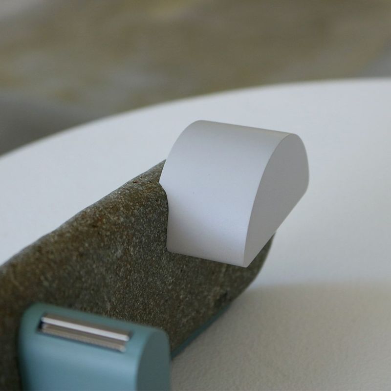 3Dプリンタ等のデジタルファブリケーションツールを使った新時代の工芸的なものづくりの可能性を探求する設計者集団、新工芸舎から“のせ物”シリーズのテープカッターのご紹介です。