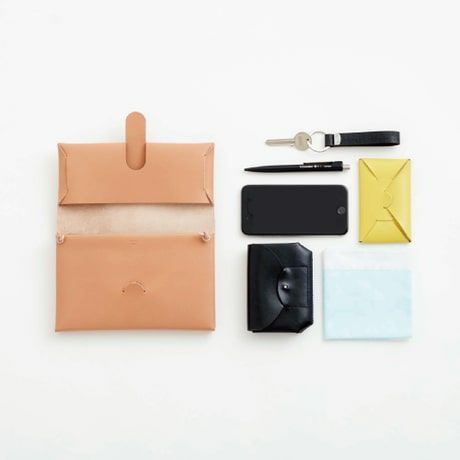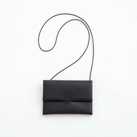 ストラップは柔らかい革ひもを使用。結び目の位置を変えれば、長さ調整が可能。ストラップを中に入れてクラッチバッグとしてもお使いいただけます。