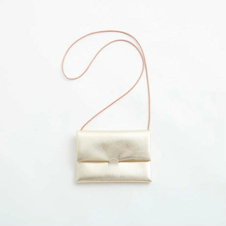 シルバー箔をクロームなめしの牛革に貼り合わせた革。光の加減ではシャンパンゴールドにも見える色味になります。