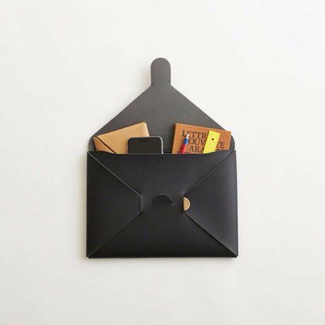一枚のパーツを縫製せずに折り込んで組み立てたシンプルな構造のクラッチバッグ。