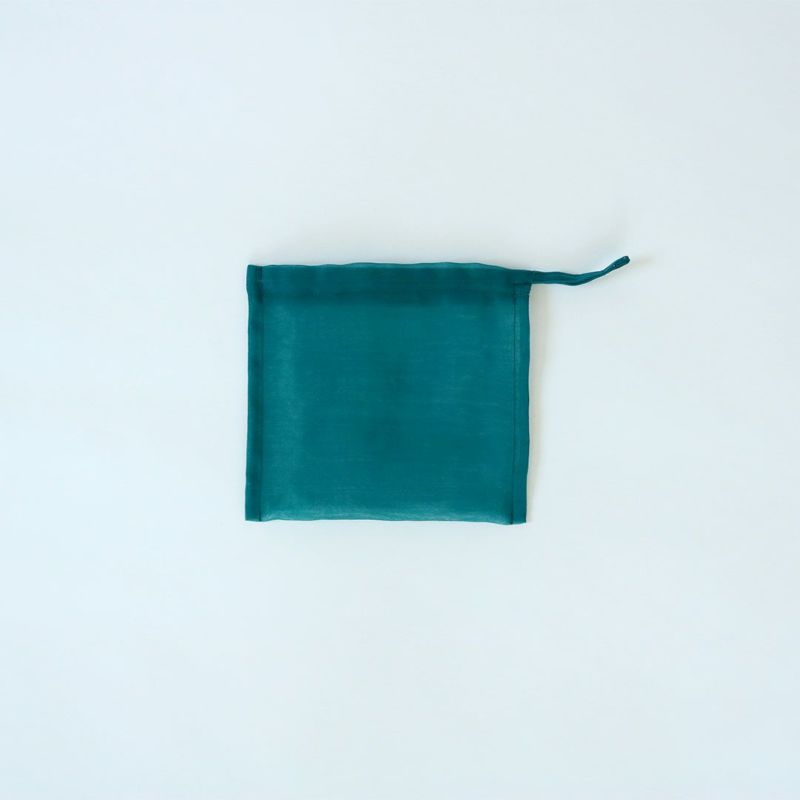 化学繊維メーカーの小松マテーレが、アップサイクルをテーマに、製造過程で発生する端切れや廃棄予定の素材を用いて、素材の特性を活かしたアイテムを開発したブランド、mate-mono。こちらのすける巾着は、サッカースタジアムの芝生を守る養生シートの素材から作られています。