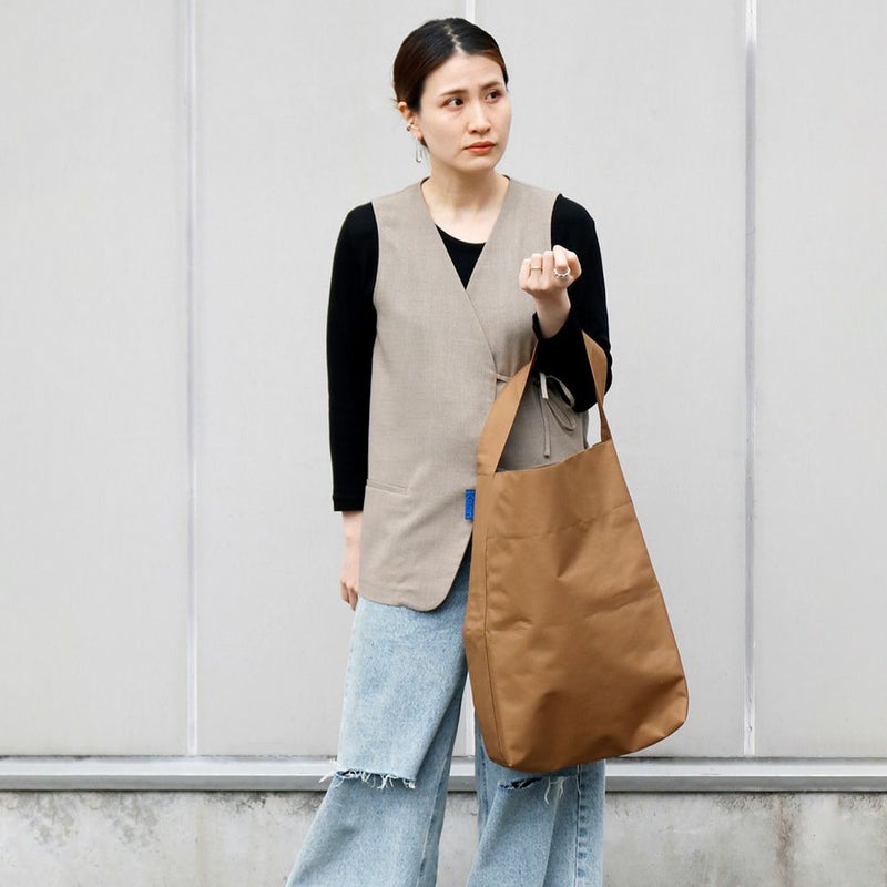Kaanは、ちょっと太めのハンドルも特徴的。重い荷物を入れても肩が痛くなく安定感があり、縦長な本体とのバランスも良い感じです。お手入れが簡単なのも、気兼ねなく使えて嬉しいですよね。
