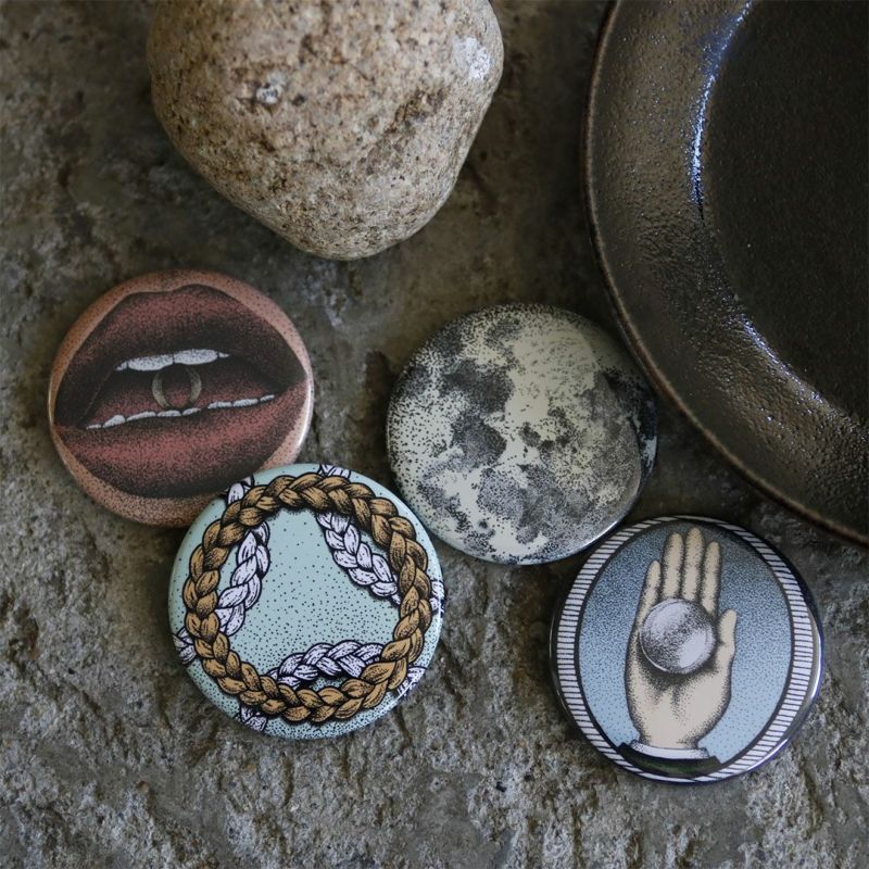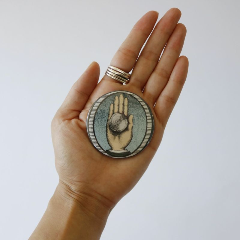 O SKIN & HAIR 定番のデザインを表面に使用した、直径5.5cmと手のひらサイズでコンパクトなミラーは、化粧ポーチやポケットにも収まる持ち運びしやすいサイズ感。 ポイントメイクやリップを直す時など日常のふとした時に必要になる、手元に一つは持っておきたいミラーです。
